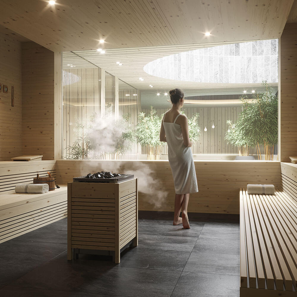 La nostra outdoor spa comprende due saune, intime e accoglienti (la biosauna a 60 °C e la sauna finlandese a 90 °C). Per concludere in grande stile, vi attendono la nostra vasca idromassaggio all’aperto e, se volete rinfrescarvi, anche una doccia en plein air.