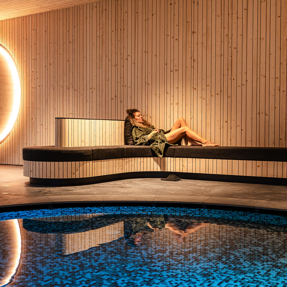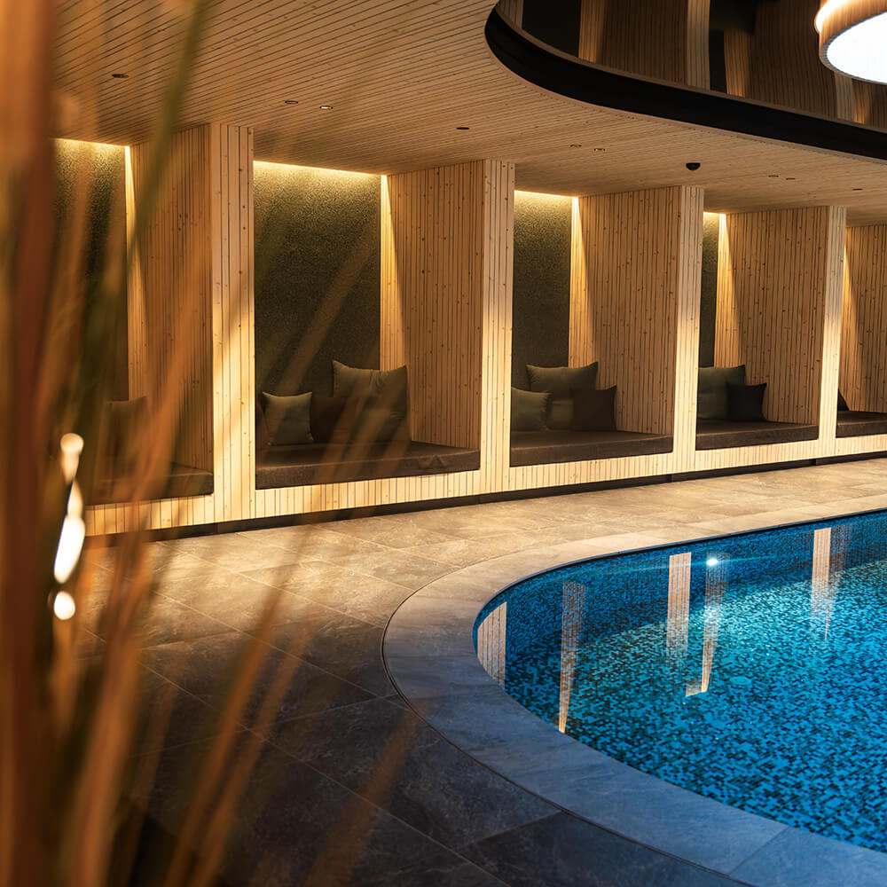 Wenn das Südtiroler Wetter mal nicht mitspielt oder ihr euch einfach ein bisschen Wärme wünscht, ist unser Hallenbad-Bereich die perfekte Alternative. Mit angenehmer Wassertemperatur, stilvollem Ambiente und wohltuender Ruhe.